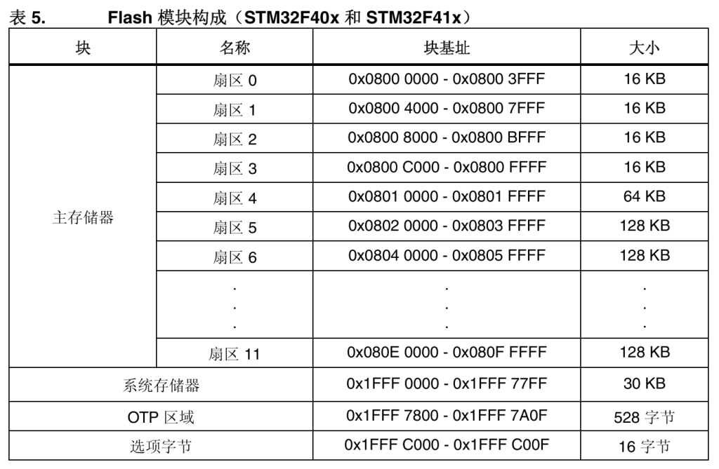 — 主存储器块,分为 4 个 16 KB 扇区、1 个 64 KB 扇区和 7 个 128 KB 扇区