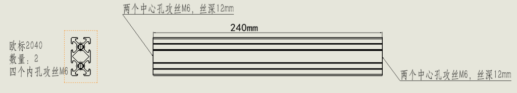 为了能让框架稳固连接,在X轴的铝型材侧面两处要攻丝,如下: