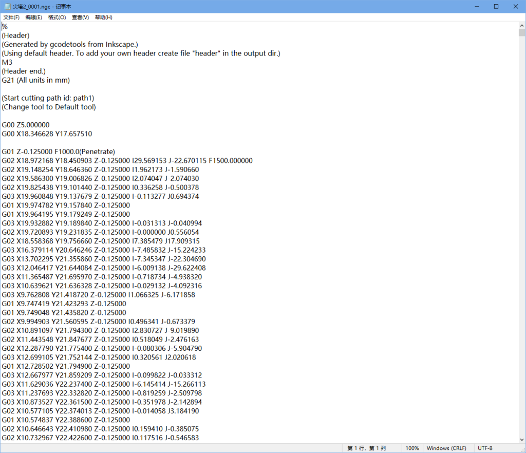 在自己设置的目录下,会生成一个xxx.ngc的文件,这里面存的便是G代码