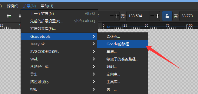 然后再次框选自己生成的白描位图,点击顶部的扩展——Gcodetools——Gcode的路径