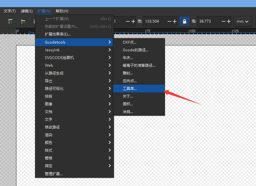 然后框选自己生成的白描位图,点击顶部的扩展——Gcodetools——工具库