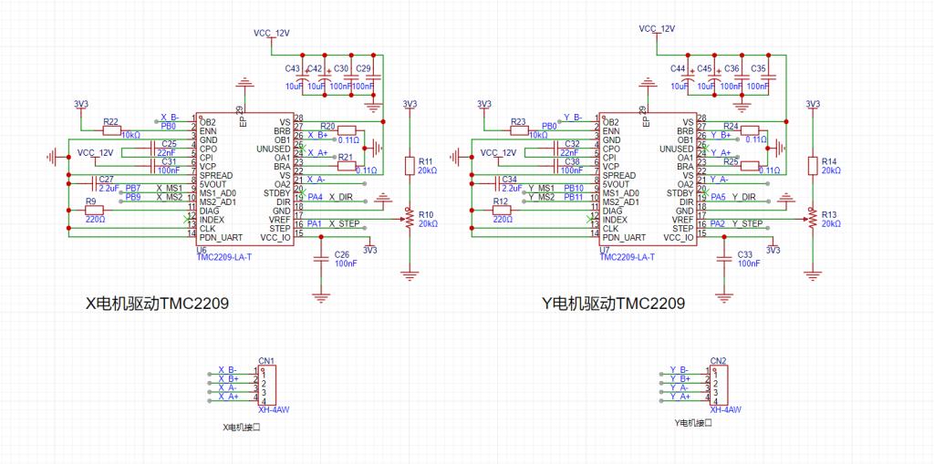照着手册画的,因为不打算使用串口跟TMC2209图像,所以就没弄接口