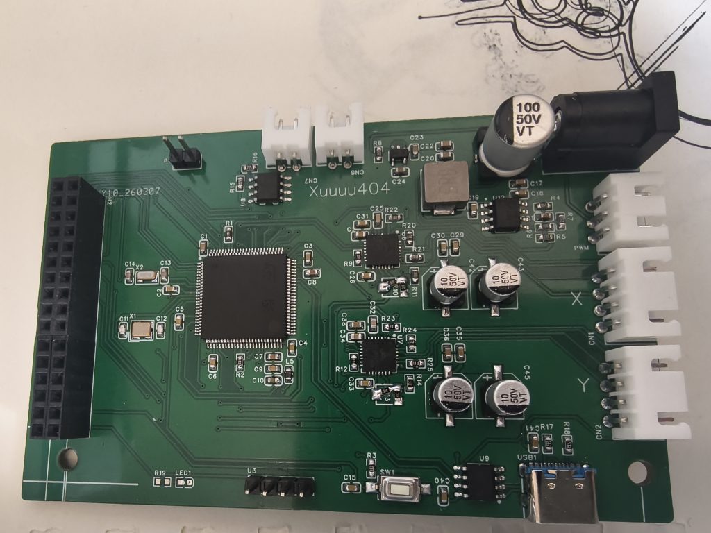 从外部接入12V,12V接TMC2209的VS,使用RT7272芯片将12V转换为5V,5V给舵机供电,再通过LDO(RT9013-33GB)转换为3.3V给STM32和其他外设供电。